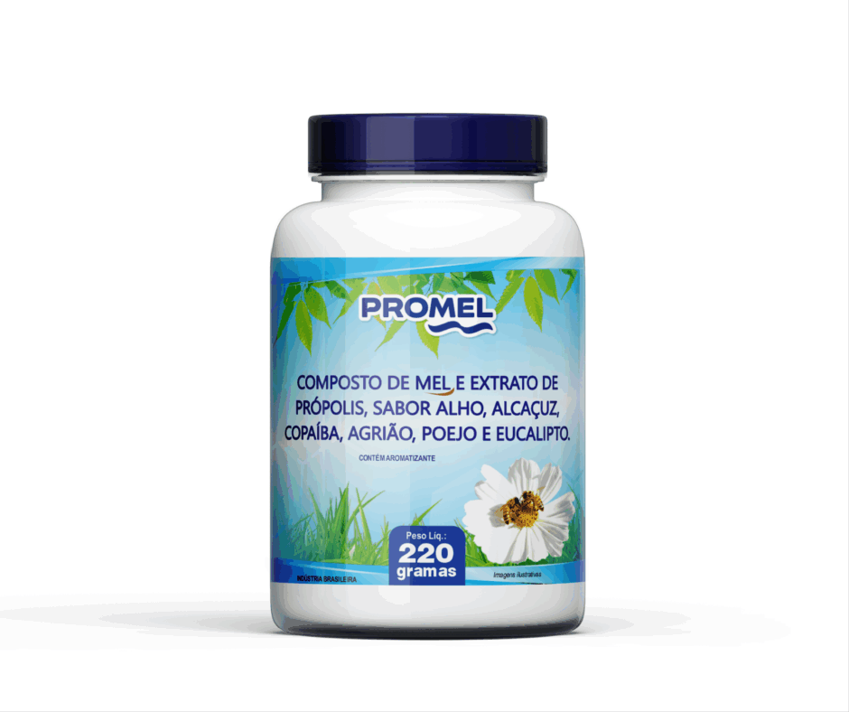 INGREDIENTES: Mel, extrato de própolis e aroma natural de alho, alcaçuz, copaíba, agrião, poejo e eucalipto.